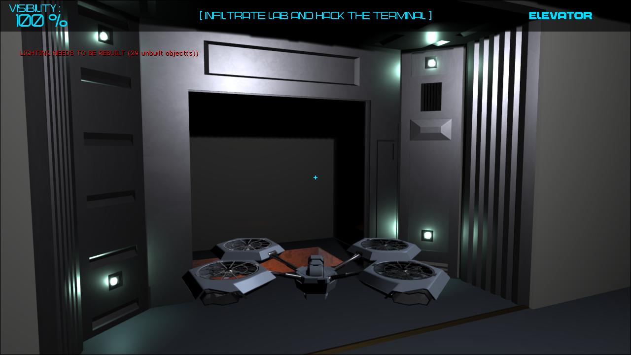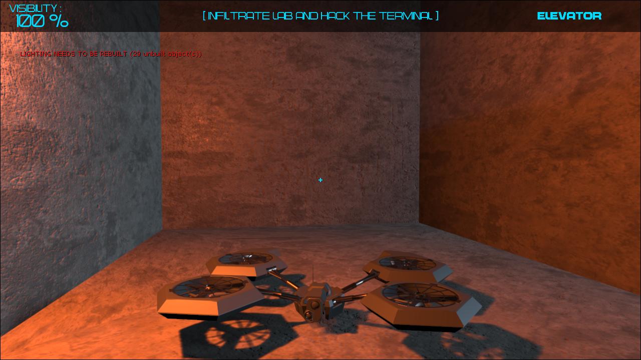 This week we’ve updated the basement level with AI and objectives, added a new quadcopter model and started developing exterior building tiles.