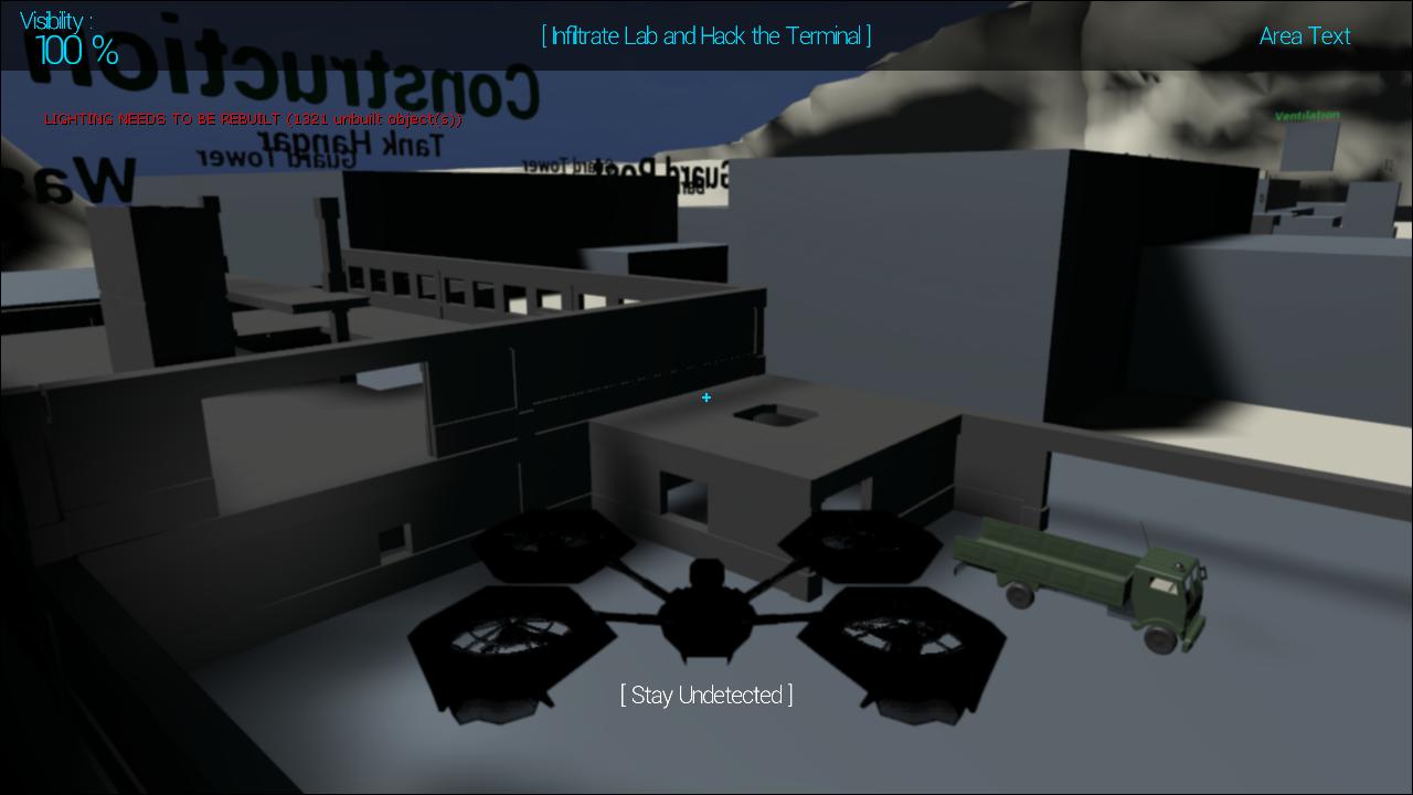 I’ve been working on the rough plan for the first level and have created a basic whitebox. The first level is an open area that allows players to tackle some simple objectives in a variety of ways. As well as this, the level will be split up into smaller areas that will eventually become multiplayer maps.